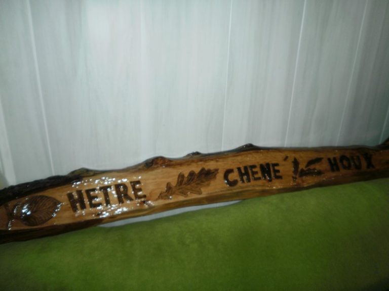 Réalisation faite pour ma soeur, Famille d’accueuil dans le nord de la France. Outils: Ciseau à bois & Gouges. Bois: Tilleul Teinté et vernis.