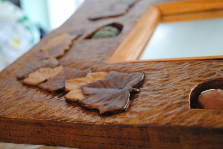 Miroir réalisé dans un morceau de tilleuil… Travail très agréable à faire… pour un résultat sympatique. J’ai osé les couleurs…