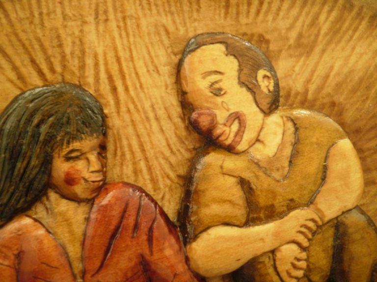 Réalisation dans du tilleuil. Fait au fil du bois, sans modèle. Juste pour le plaisir. Dimensions: Femme => 44 cm de haut Enfant => 26 cm de haut