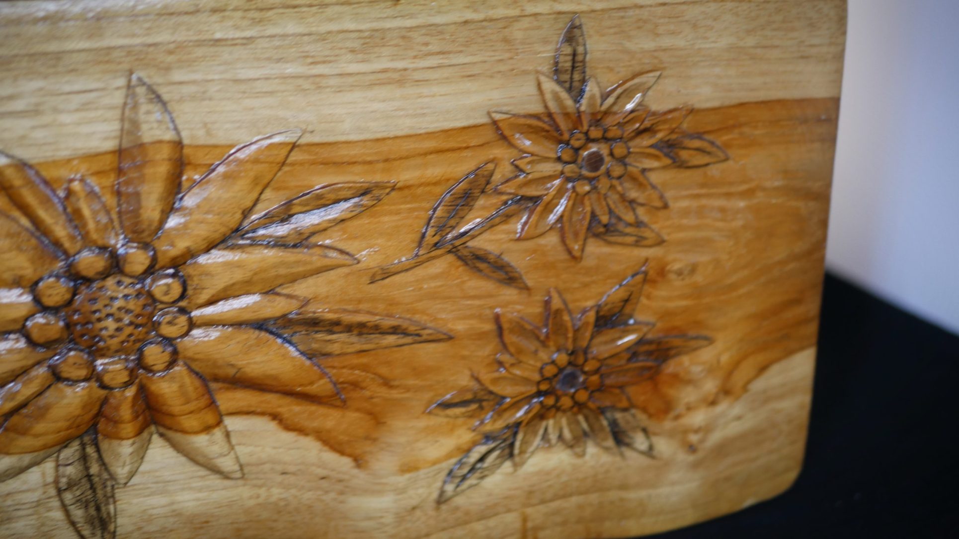 Fabriqué à la main avec soin, il comporte des motifs d’edelweiss sculptés à la gouge et au ciseau à bois, qui ajoutent une touche d’élégance.