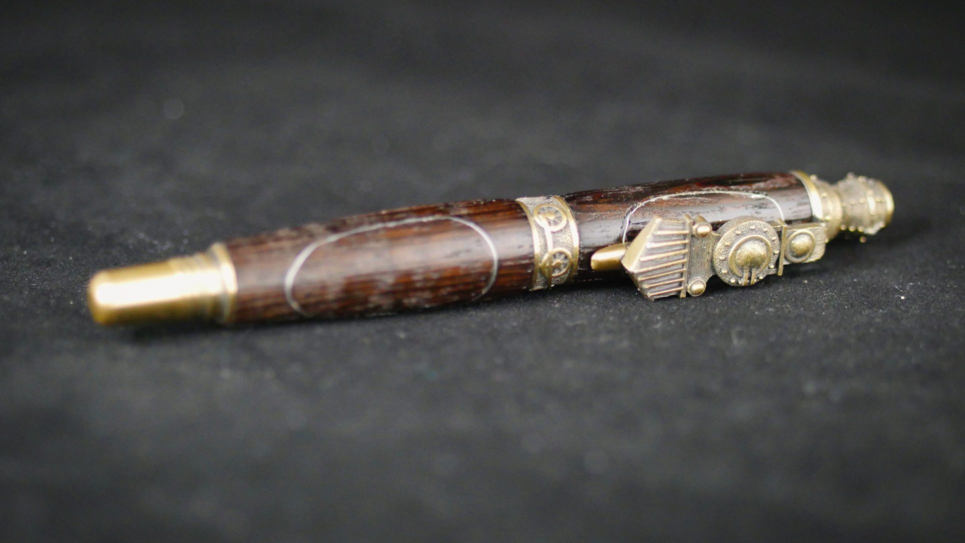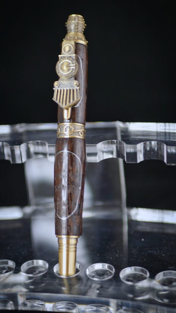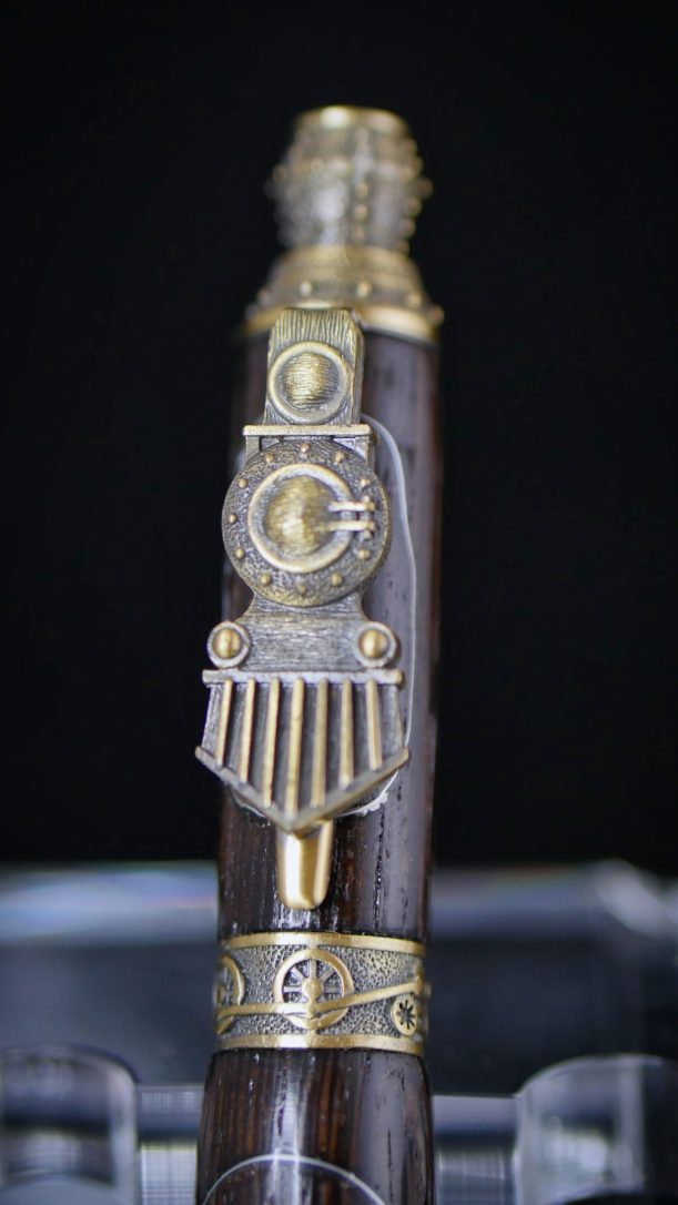 Découvrez notre magnifique stylo à bille « Petit train » en bois de Noyer turc foncé avec métal incorporé.