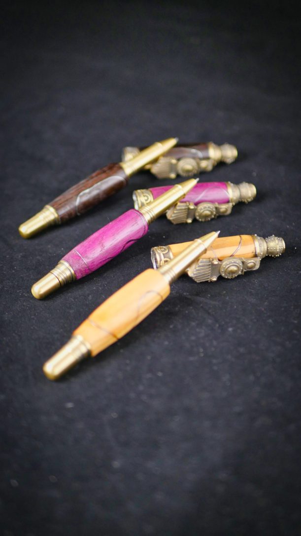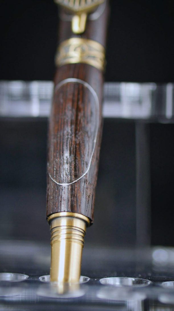 Ce stylo est tourné au tour à bois et assemblé à la main pour un rendu unique et authentique.