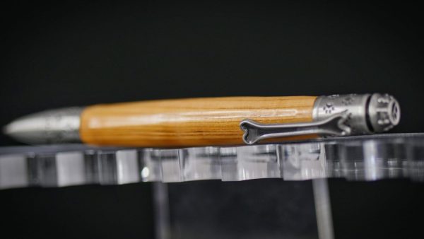 Découvrez notre stylo à bille thème « Pompier », fabriqué en bois de red heart avec incrustation d’aluminium et orné d’une gravure représentant un camion de pompier sur son mécanisme. L’épingle en forme de hache de pompier est également le levier pour ouvrir le stylo.